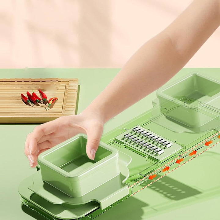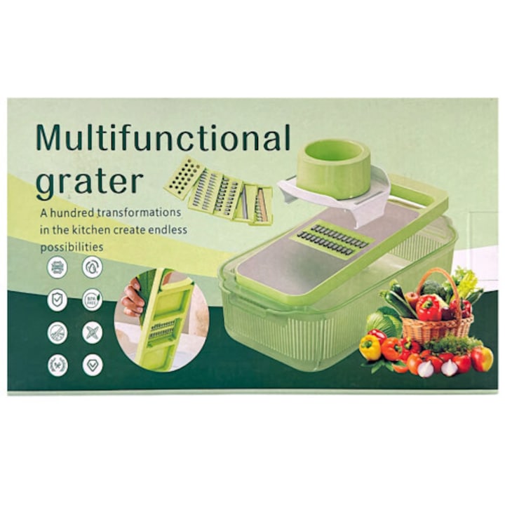 Transformă modul în care pregătești mesele cu această răzătoare multifuncțională cu 6 lame interschimbabile. Ideală pentru legume, fructe și brânzeturi, te ajută să economisești timp și efort în bucătărie.